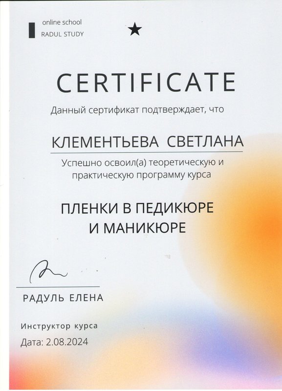 Хожу сюда и на стрижку, и на маникюр и хочу отметить, что сотрудники нравятся и качественно выполняют свою работу. Например, ногти держатся две недели точно, даже при том, что я постоянно с химией занимаюсь. Мастера, как Светлана Клементьева, прислушиваются к клиентам, работают быстро и качественно, все проверяют, показывают, если что-то не устраивает, подбирают варианты, пока все не устроит. Я особо не заморачиваюсь, обычно прошу один тон, но если показываю какие-то дизайнерские решения, то мне делают даже лучше.