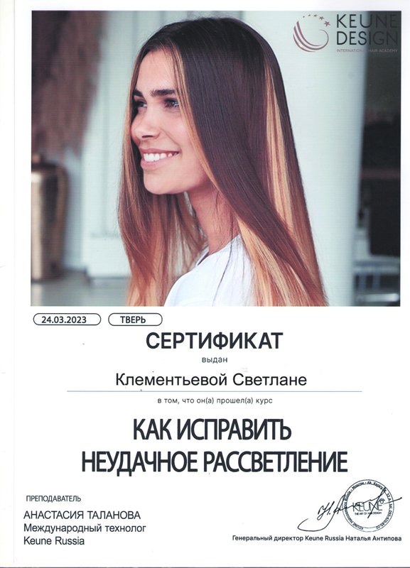 Преимущества: Длительное время хожу к мастеру Светлана Клементьева. Талантливый парикмахер. Окрашивание и стрижка всегда идеальны